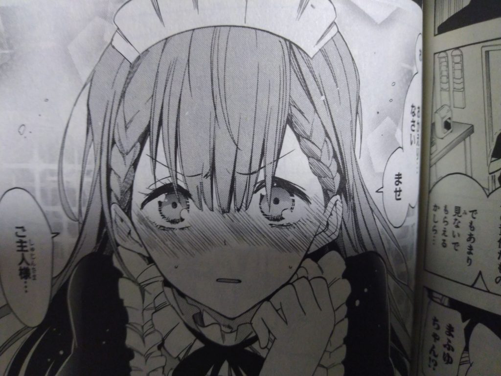 まず練習で成幸相手に、おかえりなさいませご主人様を言うのですが恥ずかしながら『おかえり…なさい ませご主人様…』と言うので成幸は、その破壊力によりメガネがパリーンと割れてしまうのでした!!!