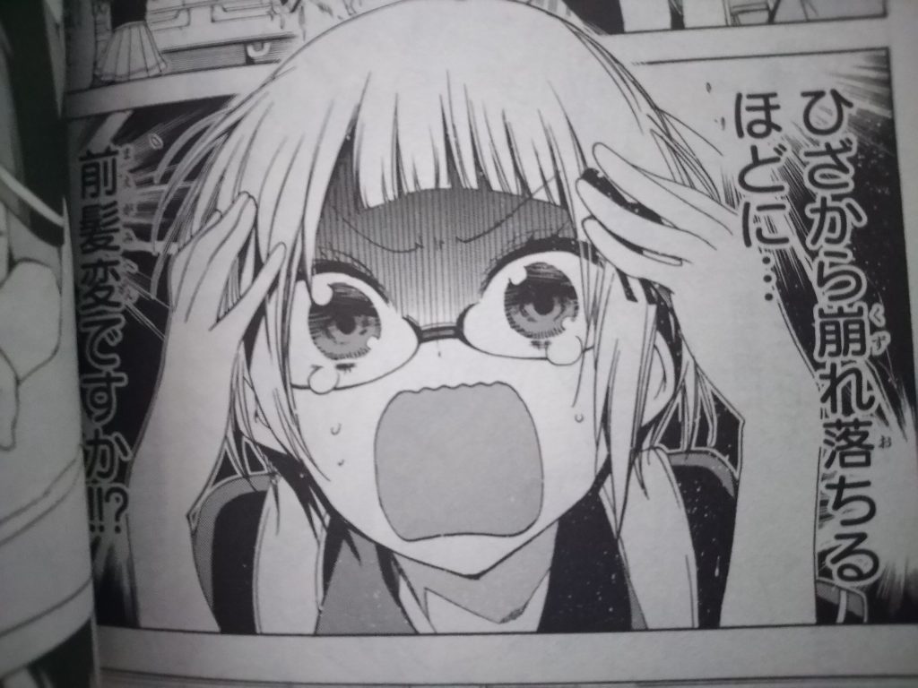 それを見た理珠は(ひざから崩れ落ちるほどに…前髪変ですか!!?)とショックを受けるのでした。