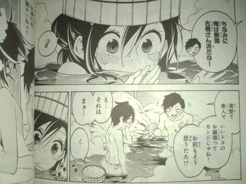 このシーンは、ある出来事により古橋・うるか・理珠が男湯から脱出する時に、男子の会話で成幸が