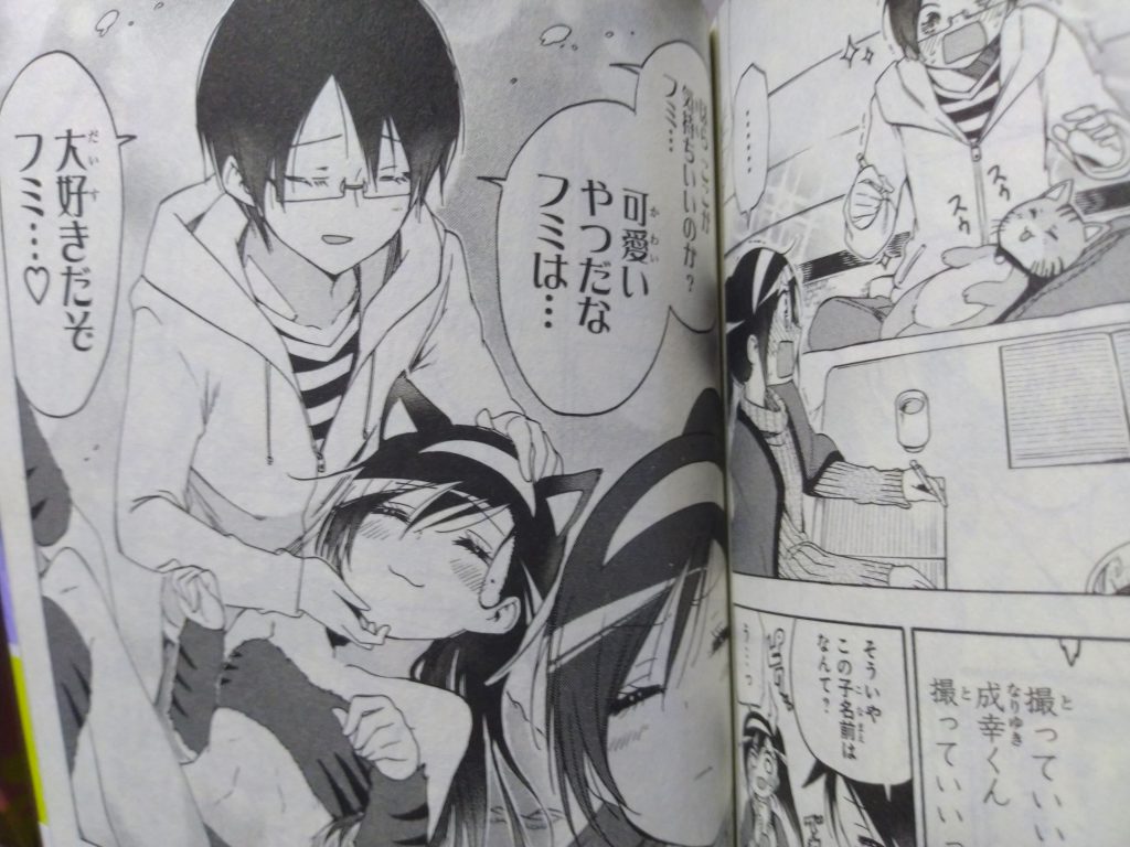 このシーンは、とある理由で古橋家で預かっている猫 と成幸が文乃との勉強の合間に戯れている場面です。