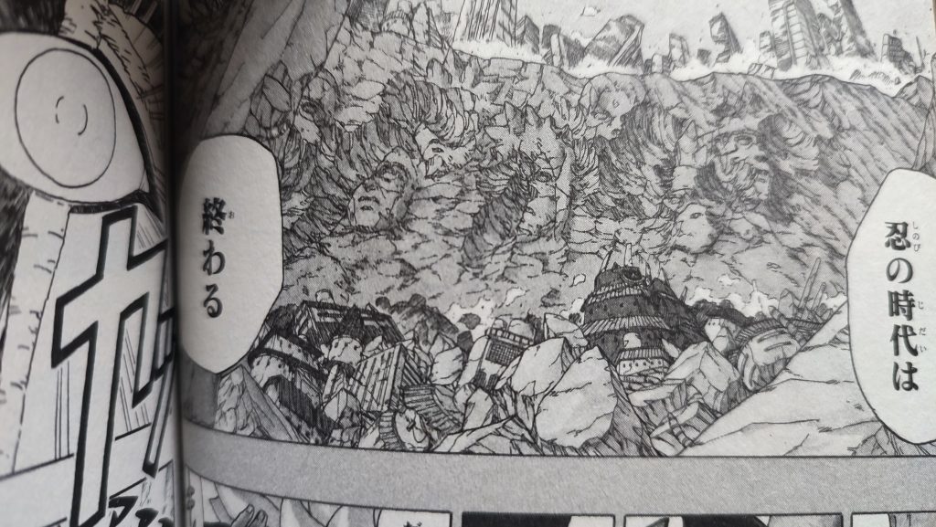 そして、崩壊した歴代の火影岩の場所で、ボルトは『…ここまで、やるとはな…、カワキ…!』と話しかけ、カワキという青年は、『お前も、七代目と同じ所へ、送ってやるよ…ボルト』と、意味深な発言をします。