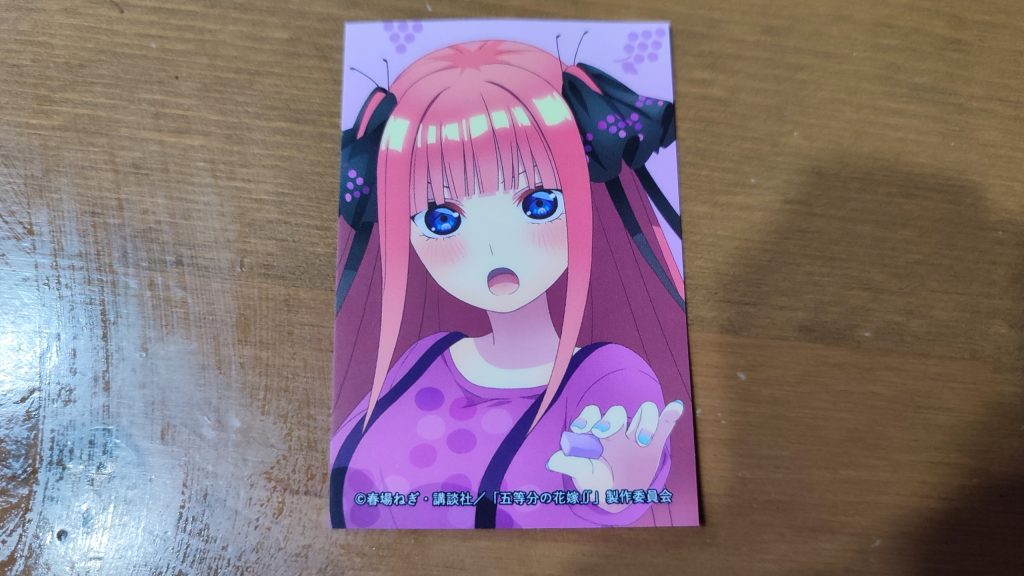今回は、五等分の花嫁コラボのお菓子を、貰ったので、ブログに載せてみました。