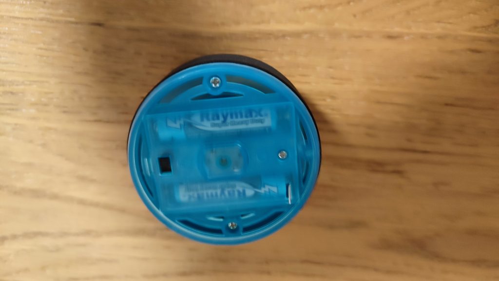 そして、本体は、ひっくり返すと、単三電池2本なので、遊びすぎて、電池が切れても、換える事ができるので、遊び放題となっています。