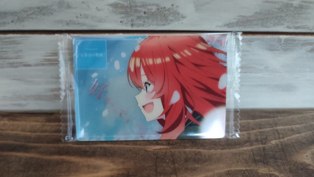 今回は、以前に箱買いしておいた、映画五等分の花嫁ウエハース2が、遂にラスト1個になったので、開封してみた結果を載せようかと思います。