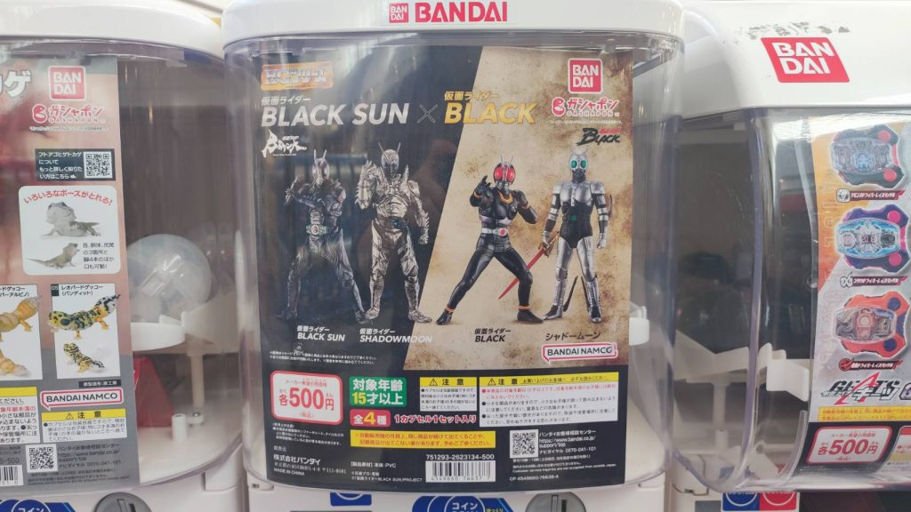 仮面ライダーBLACK世代と、アマゾンプライムでやっているBLACKSUNが、好きな人なら、必ずやってしまいそうな、ガチャガチャで、知り合いが一回やってみた所!!!
