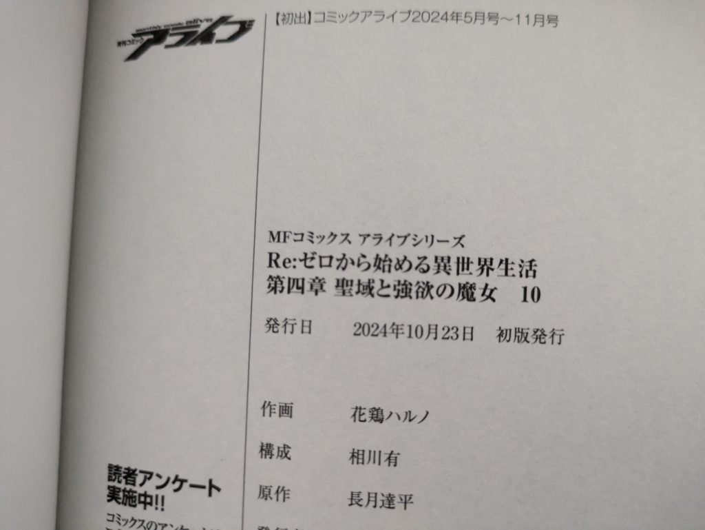 Re:ゼロから始める異世界生活 第四章 聖域と強欲の魔女10巻が、発売された日は?