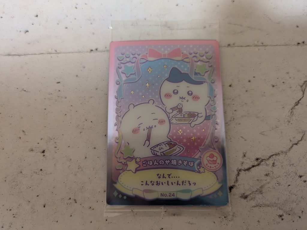 レアカードではないですが、可愛いちいかわと推しの、ハチワレの絵が、描いております。
