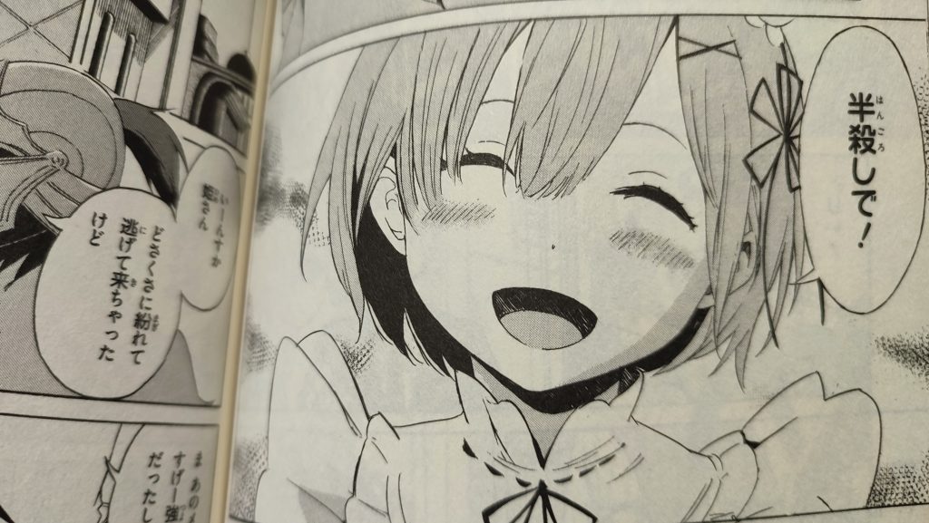 スバル達を襲ったチンピラ達に、殺意を向けるレムに、スバルが『殺しちゃダメだよ?』と注意するので、レムは、スバルの優しい心に感激し、チンピラ達に笑顔で『半殺しで!』と言い、チンピラ達を、意図もたやすく蹴散らしてしまうのでした。