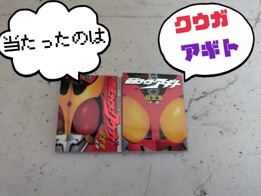当たったのは、仮面ライダークウガ超全集上巻と仮面ライダーアギト超全集下巻が、当たり、ダブること無く、良い感じで出たので、嬉しく思うotaku-dxなのでした。