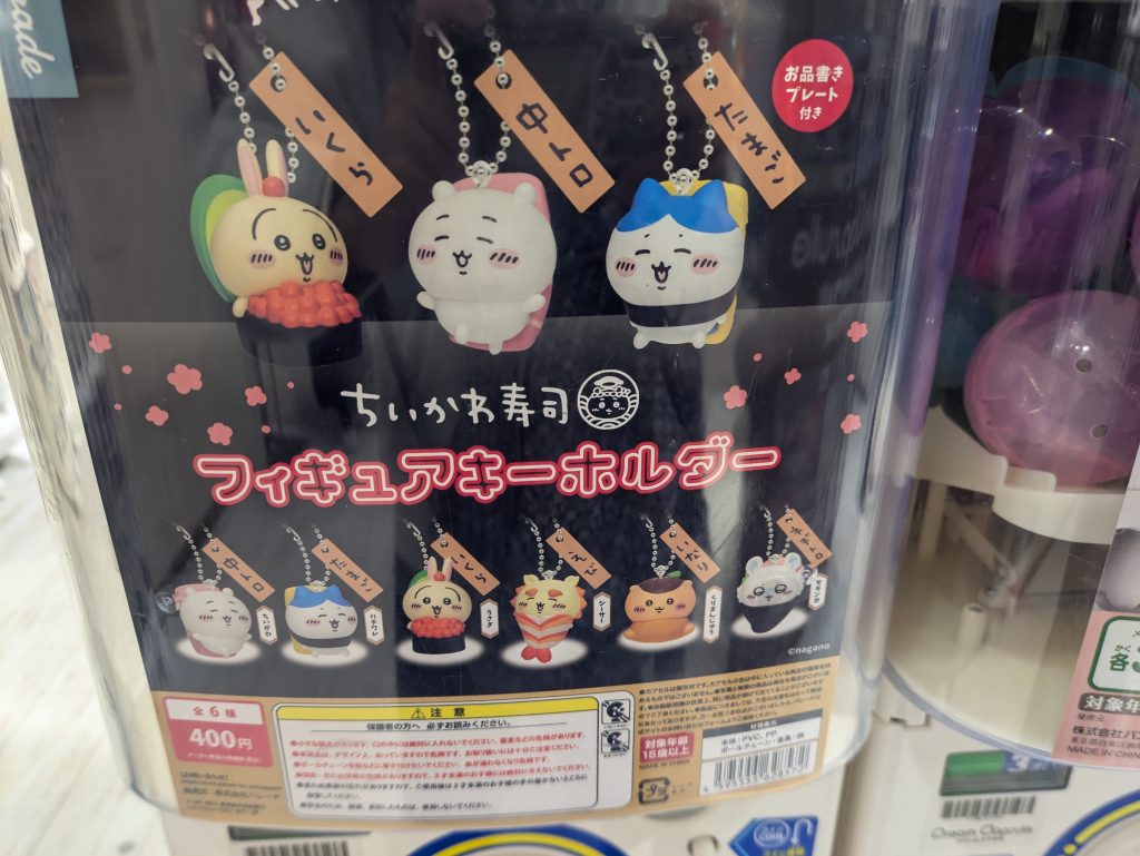 何やら、人が群がっていたので、何を皆は、回しているのだろう🤔と思い、チラッと、覗いてみると、ちいかわ寿司🍣のフィギュアキーホルダーでした✨