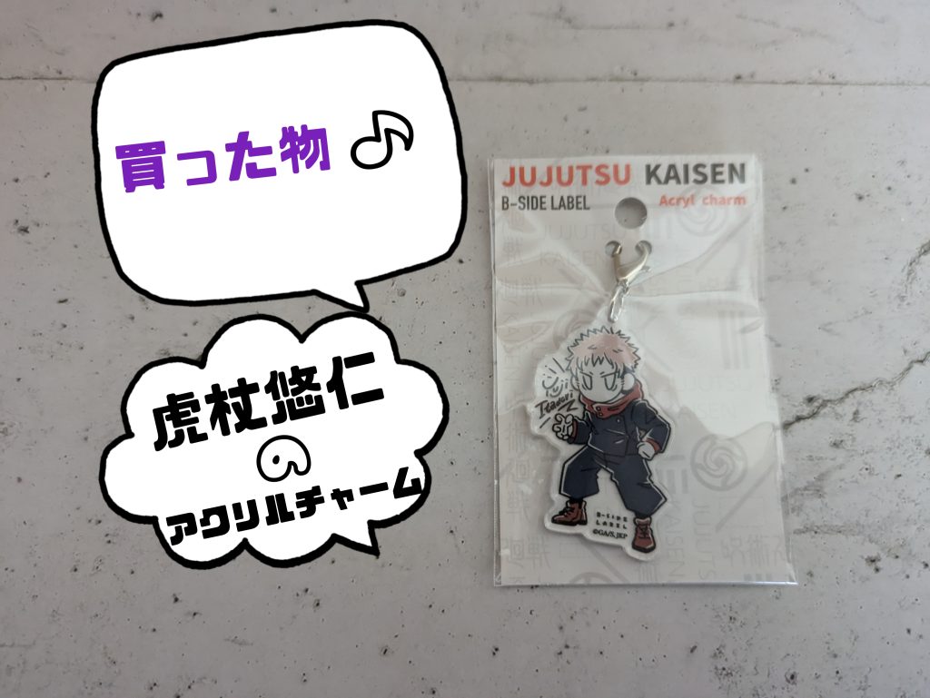 今回買ってきたのは、B-SIDE LABELから、出している!アクリルチャームで、種類は、虎杖悠仁と、宿儺と、五条悟と、七海建人と、伏黒恵とあり、自分は、とりあえず、主人公の虎杖悠仁を、購入しました。